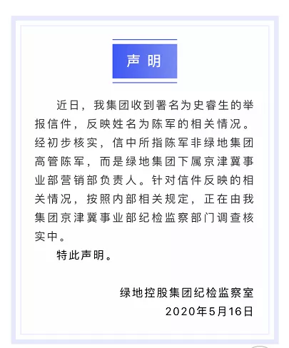 随后,绿地集团发声明: