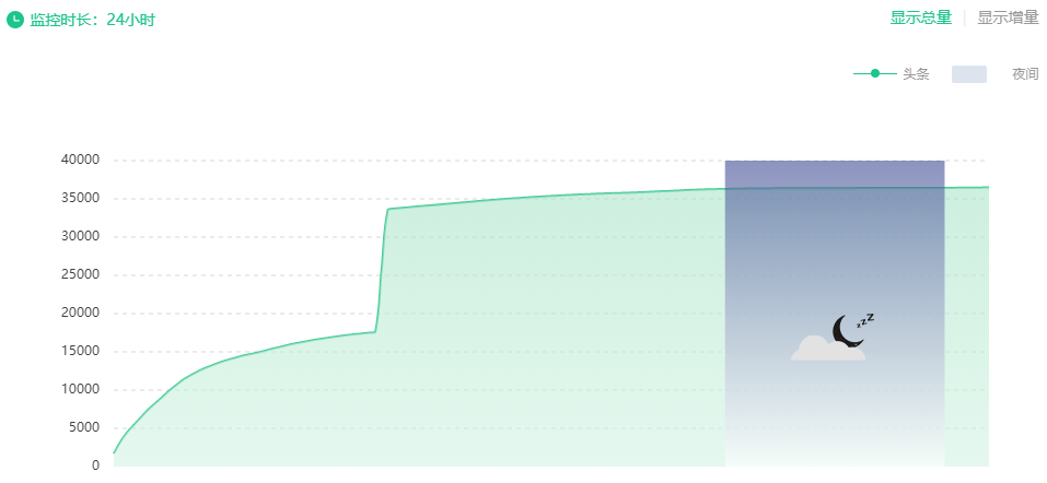 这个同一篇文章刷了两次,19点发文,到了21点,阅读量衰减,隔了一小时,阅读量又增长率过高,继续爬升,然后平线无增长进入睡眠时间,第二天早上7-8点,补刷,急剧爬升,之后呈平线,无增长。