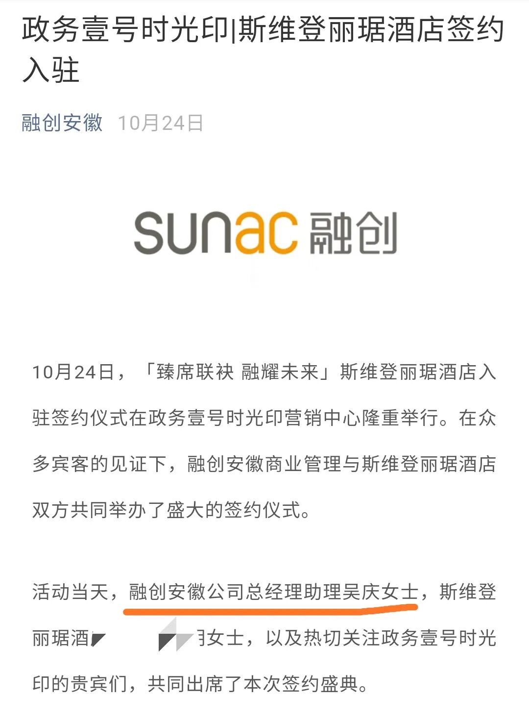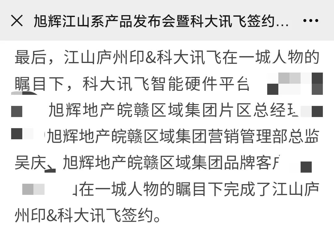 我们来看看旭辉集团2018年底的某次签约活动中的告示,旭辉地产皖赣区域集团营销管理部总监:吴庆。