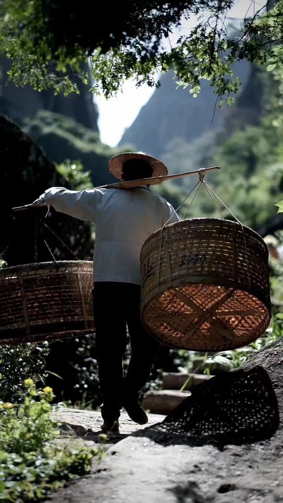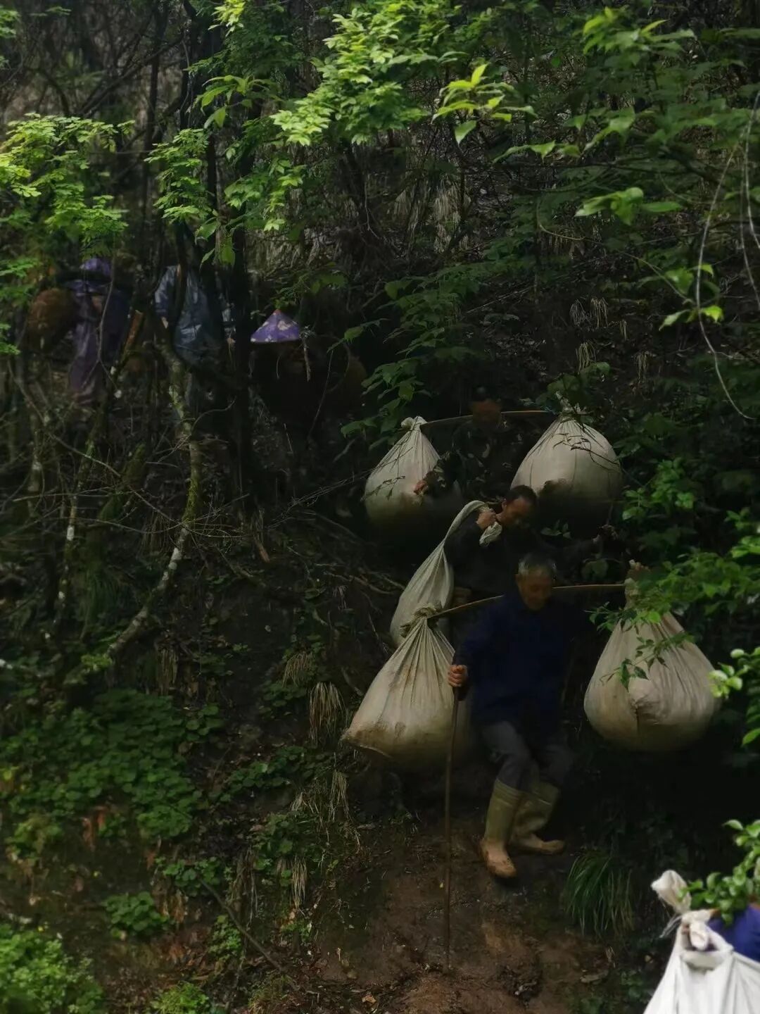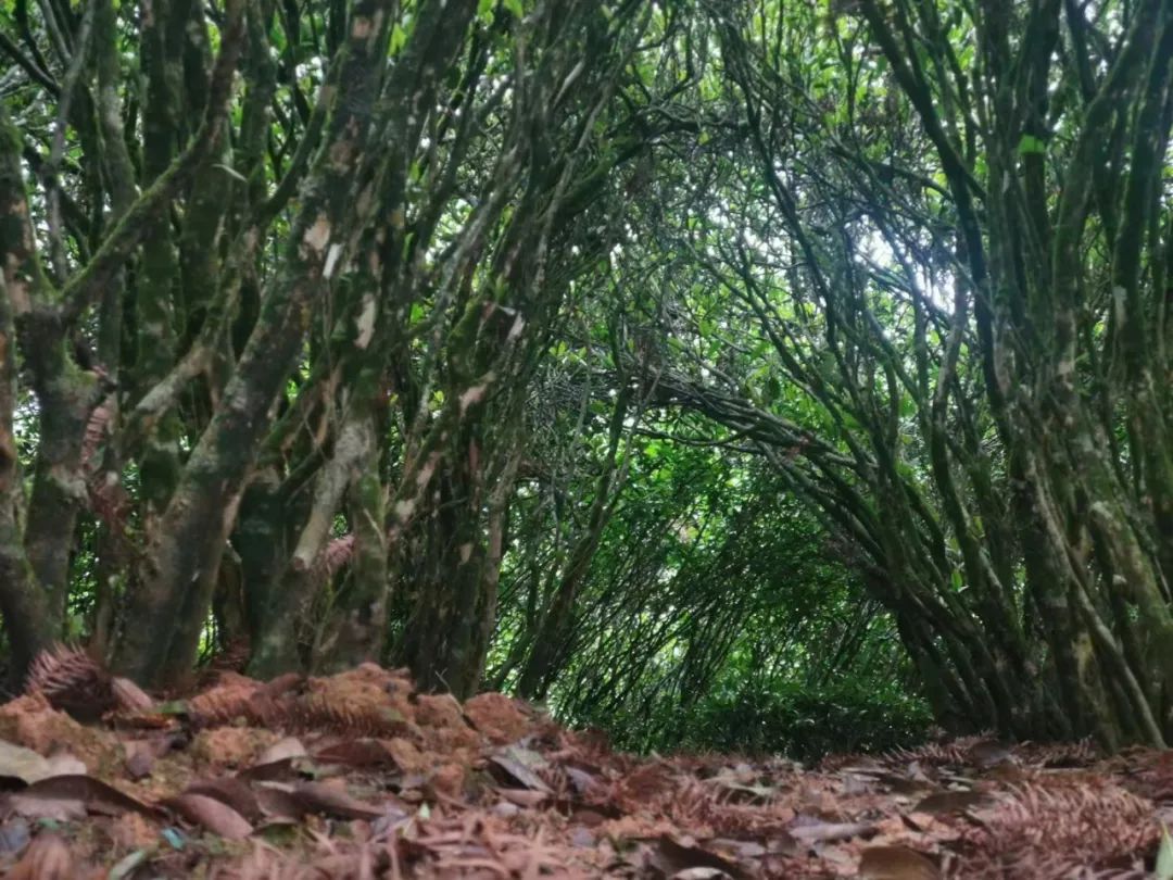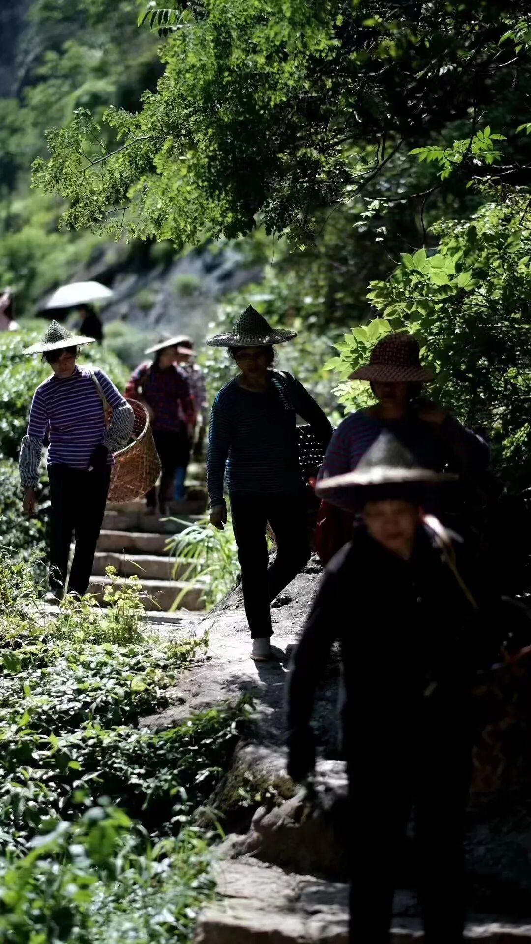 再步行走过很长一段弯弯曲曲的山间小路,就到了采茶的地方。