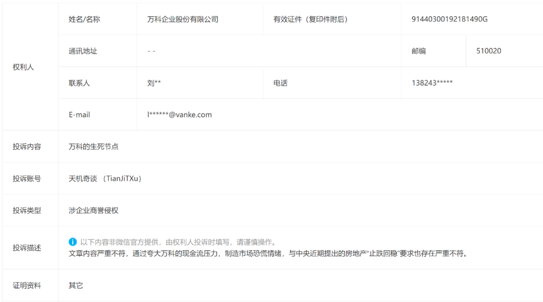 第一,万科说“文章内容严重不符”。